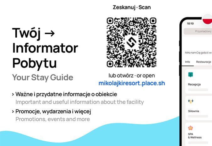 Mikołajki Resort Hotel & SPA*** is an ideal place for active recreation for the whole family. The resort has many attractions that will make your stay more enjoyable. The youngest guests can use outdoor playgrounds and playrooms equipped with games, toys and multimedia equipment. We also organize animations and games for children under the supervision of qualified staff. For active guests, we have prepared sports facilities with volleyball, basketball and badminton courts, table tennis tables and bicycle rental. By the lake there is a private beach with a pier and water equipment rental - pedal boats, kayaks, boats. There are numerous hiking and cycling trails in the area, allowing you to discover the beauty of Masurian nature.